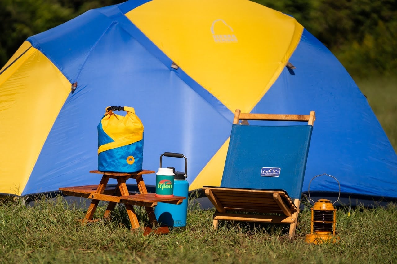 ビンテージテントやギアに絶妙にマッチするカラーリングで、特に、ビンテージテントとの相性を考えて選び抜いたブルーとイエローカラーを採用しています。