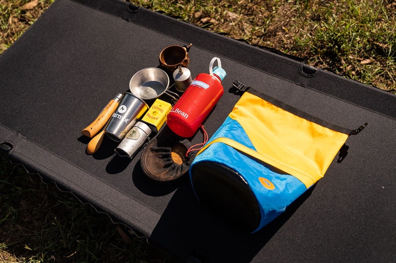 シェラカップやお箸、スプーンなどの食器類から、ロープやカラビナ、ナイフなどのキャンプギアまで、散らばりがちな小物をまとめて収納できる程よいサイズ感となっています。