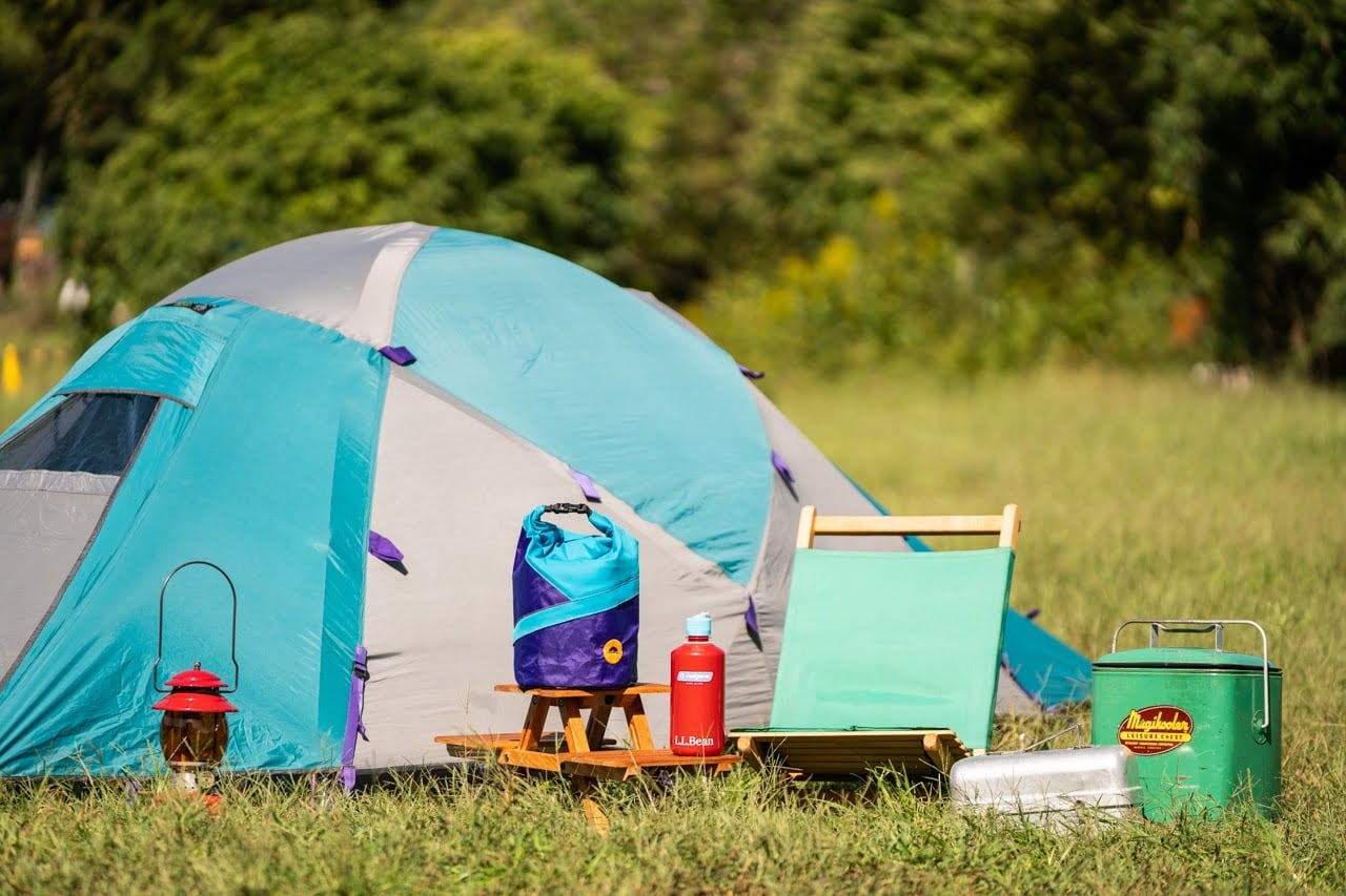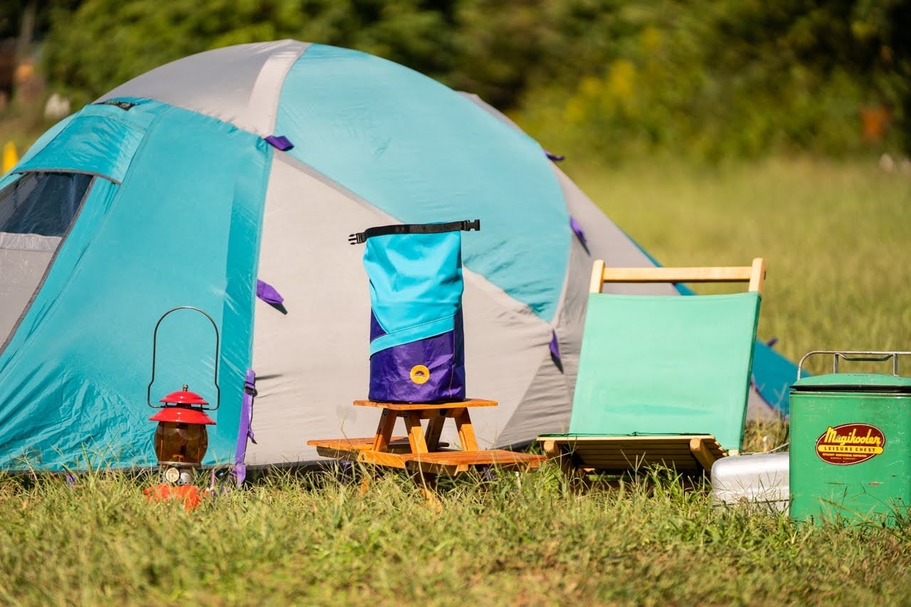 ビンテージテントやギアに絶妙にマッチするカラーリングで、特に、ビンテージテントとの相性を考えて選び抜いたパープルとターコイズブルーのカラーリングを採用しています。
