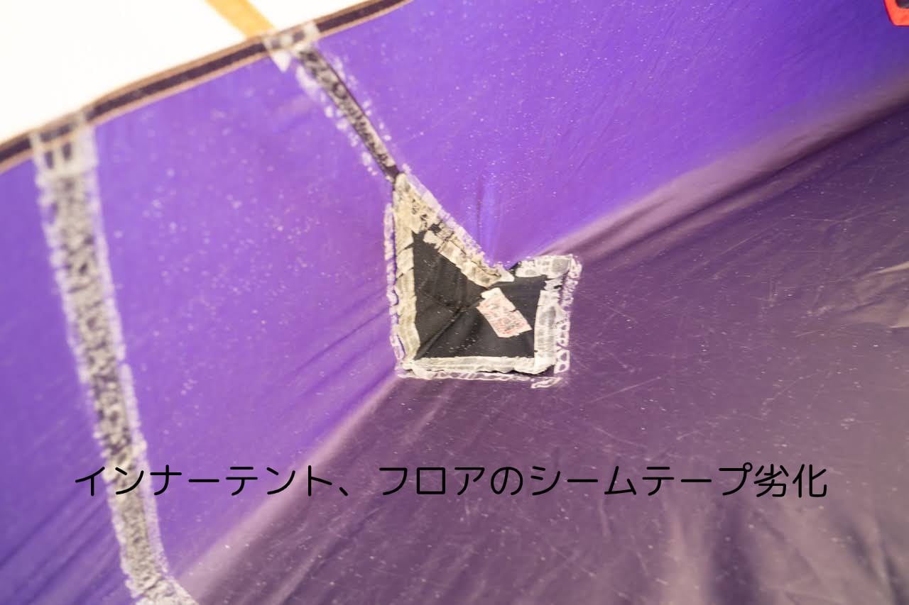インナーテント同様にシームテープの劣化がございます。
