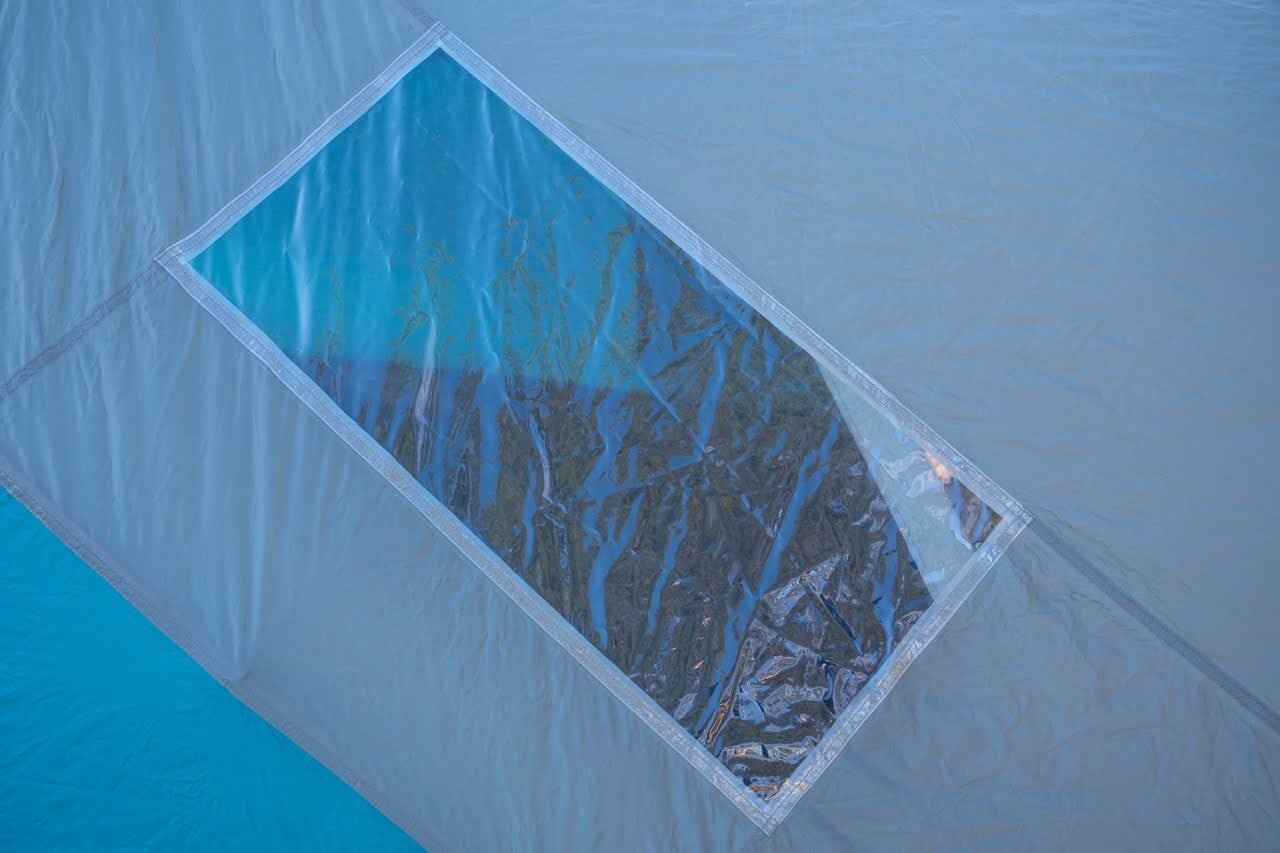 天井部に配置された大型窓により、テント内にいながらにして天候の確認や星空の観察が可能。閉塞感を感じさせないユニークな設計となっております。