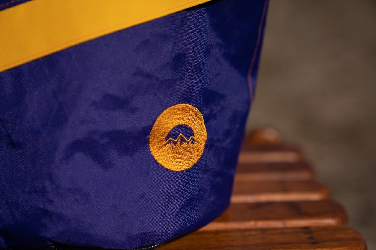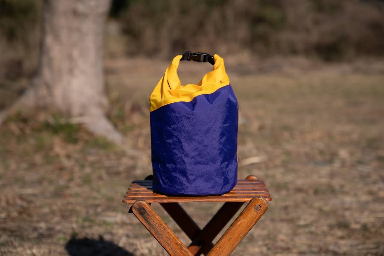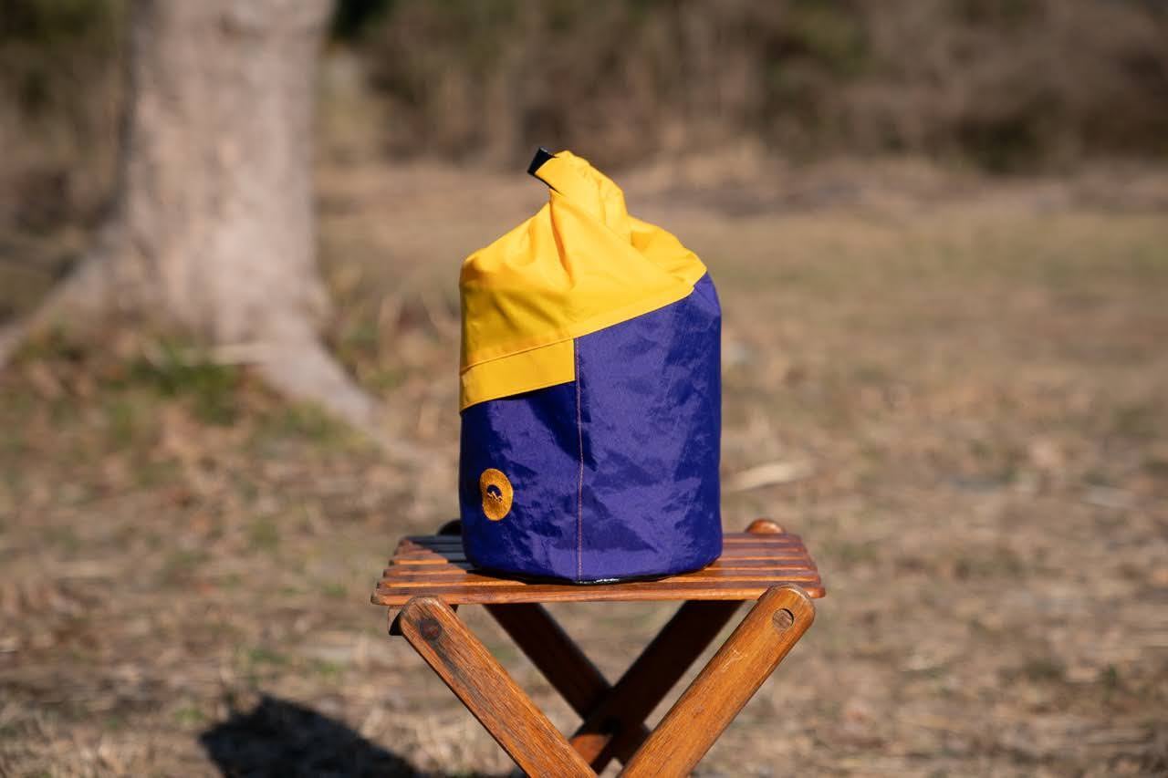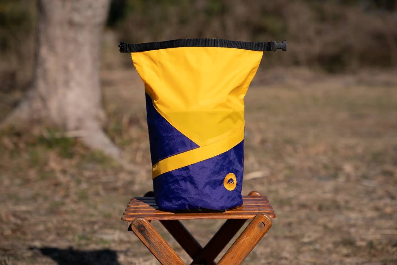 ・下部分(パープル)は高い防水性と強度を持つX-PACを、上部分(イエロー)は撥水加工を施したナイロン系の素材を使用しています。