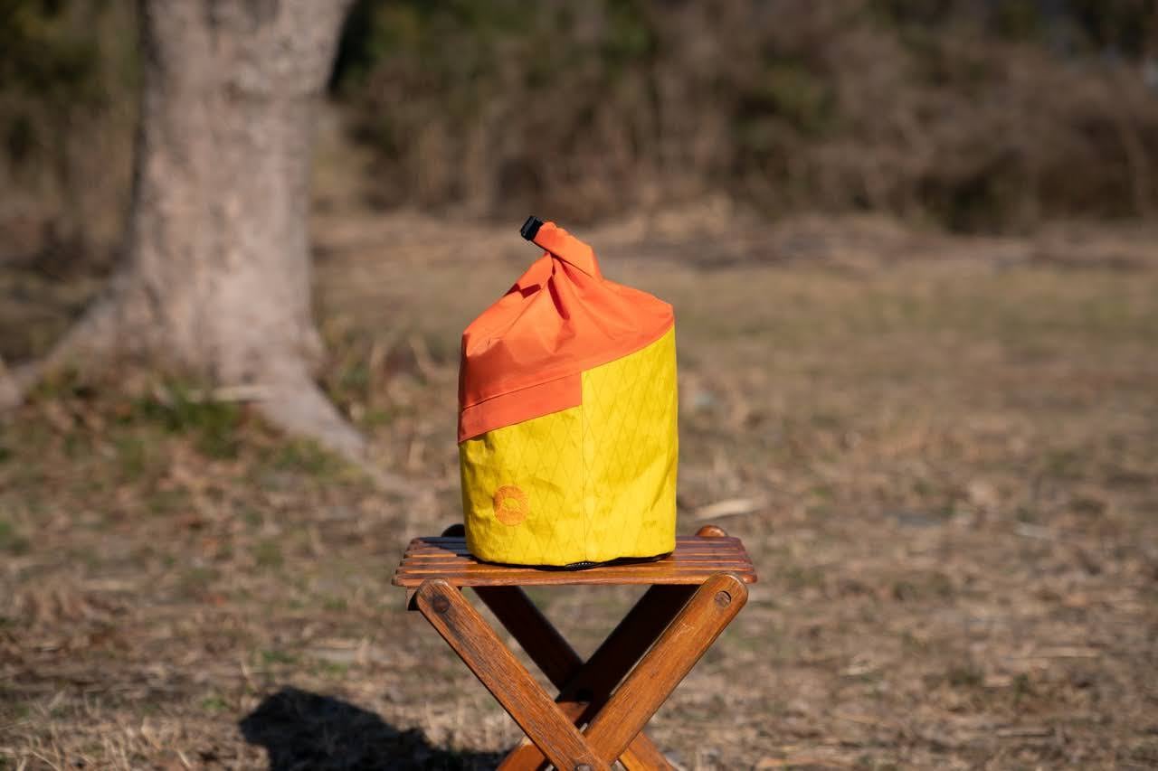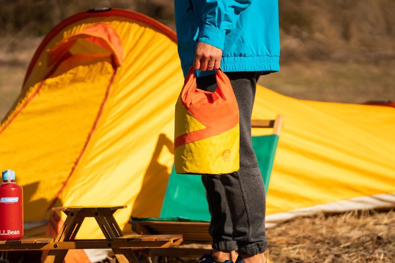 ビンテージテントやギアに絶妙にマッチするカラーリングで、特に、ビンテージテントとの相性を考えて選び抜いたイエローとオレンジカラーを採用しています。