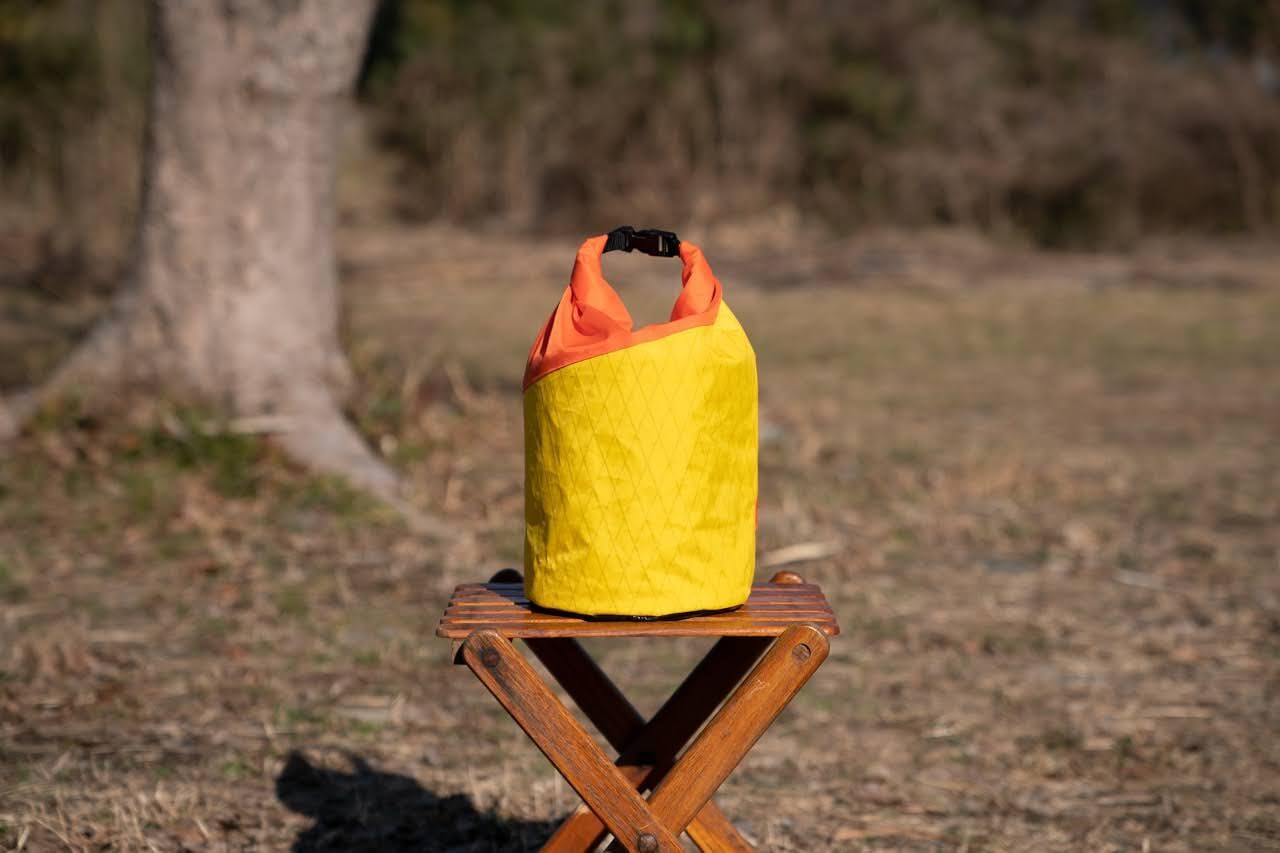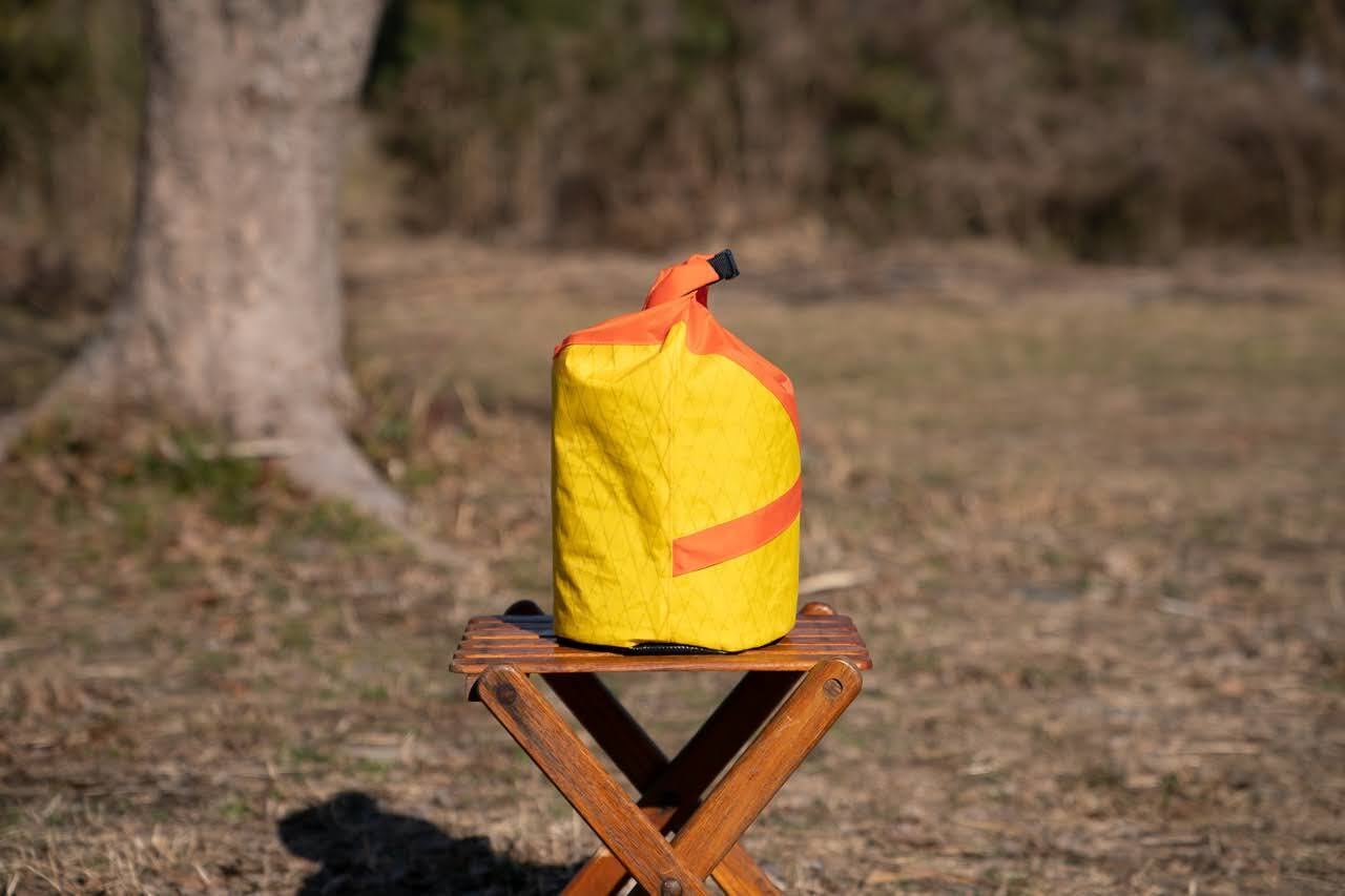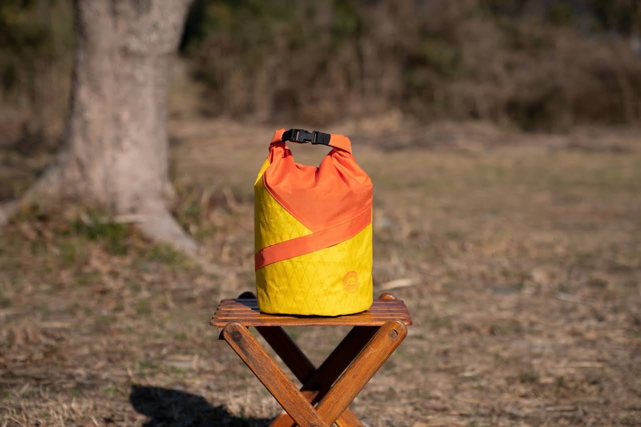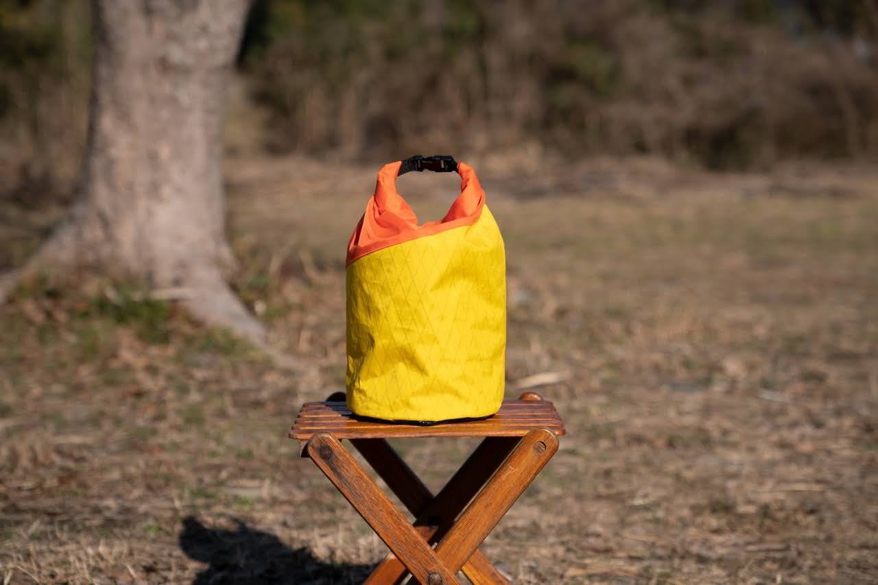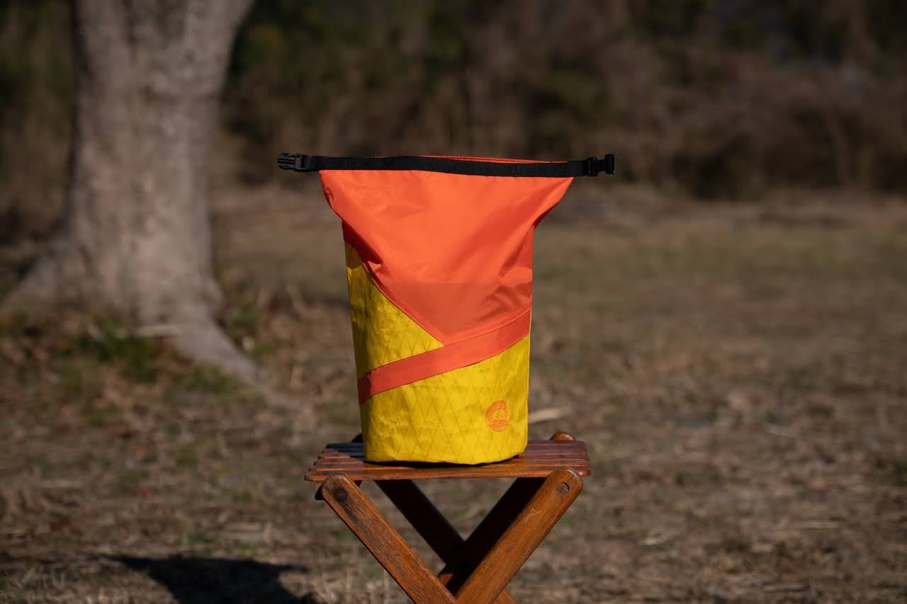 ・下部分(イエロー)は高い防水性と強度を持つX-PACを、上部分(オレンジ)は撥水加工を施したナイロン系の素材を使用しています。