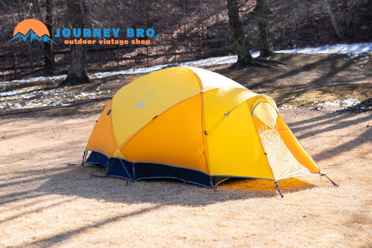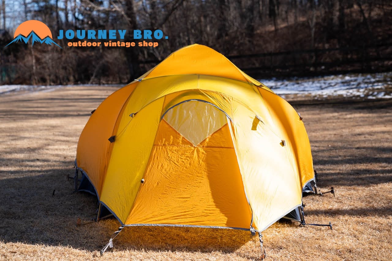 カラーリングも、珍しいイエロー×オレンジで、ビンテージな雰囲気と現代的な実用性を兼ね備えた、一生モノのハイスペックテントです。