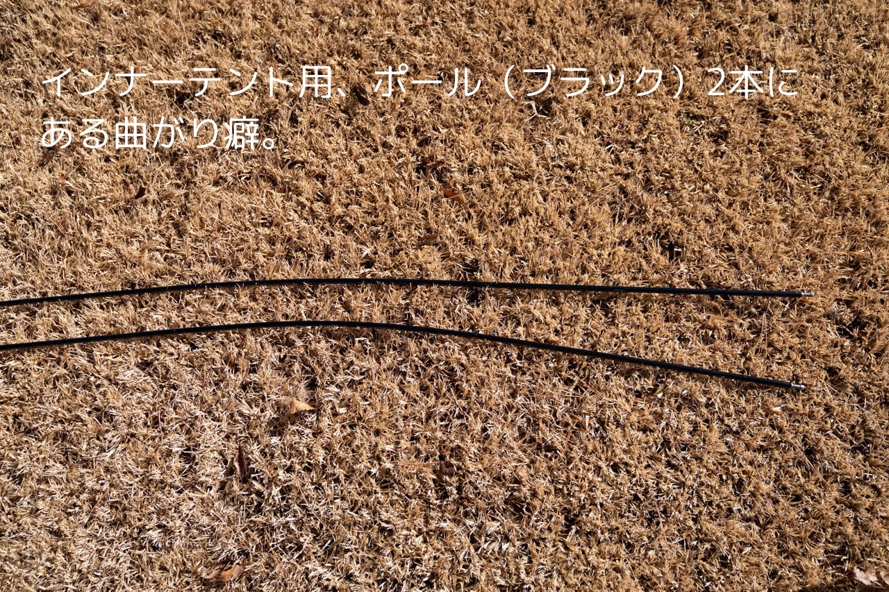 インナーテントで使用するポール(ブラック)2本に曲がり癖がございます。