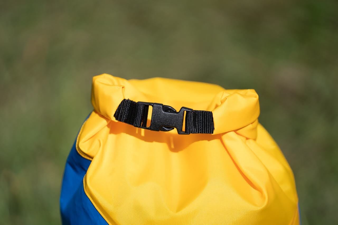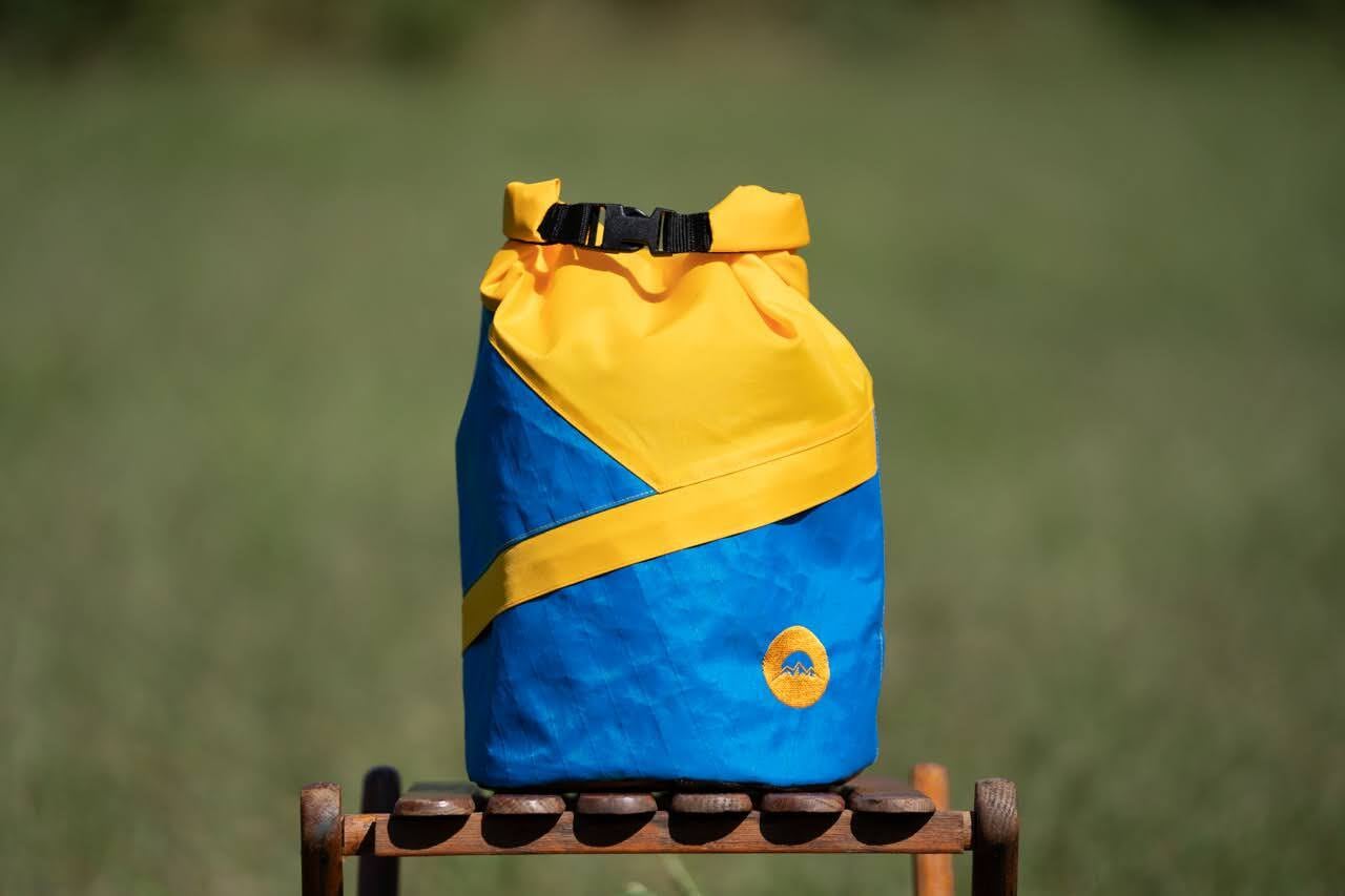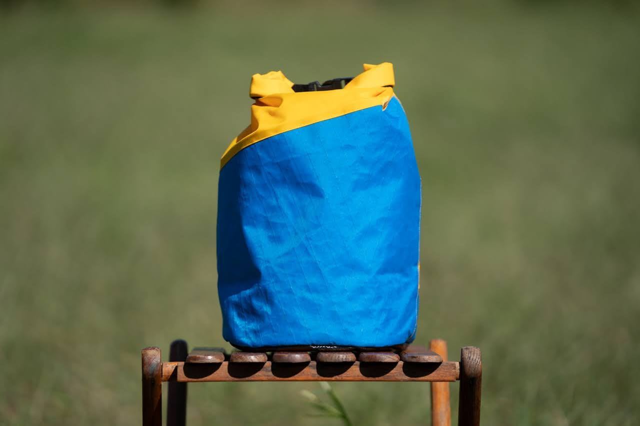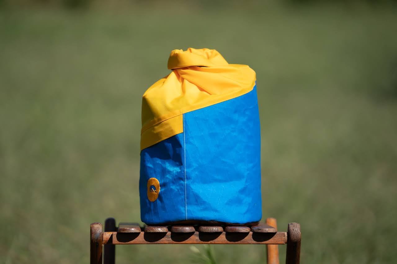 ・下部分(パープル)は高い防水性と強度を持つX-PACを、上部分(イエロー)は撥水加工を施したナイロン系の素材を使用しています。