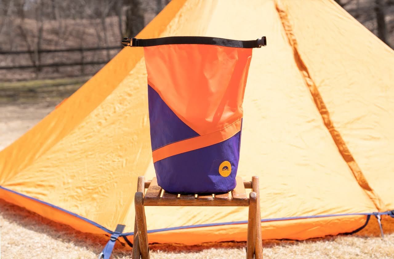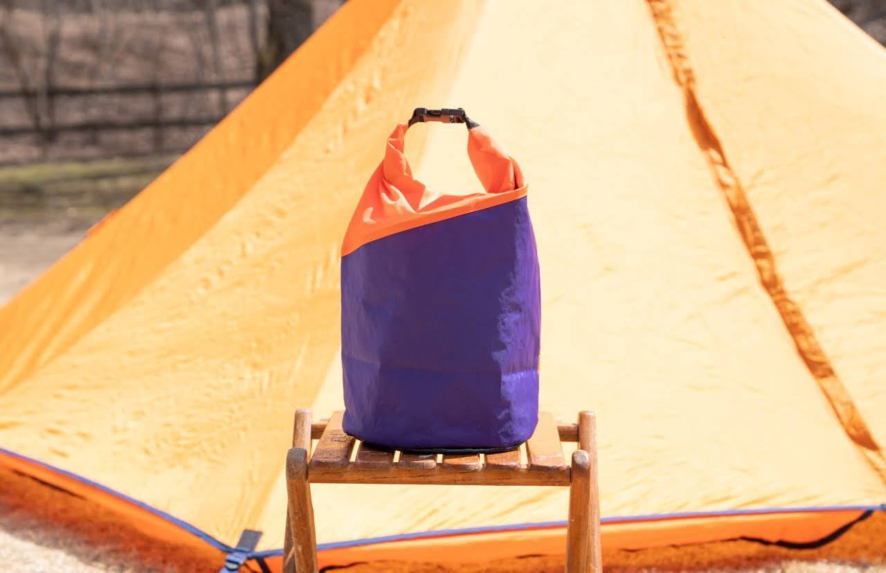 ・下部分(パープル)は高い防水性と強度を持つX-PACを、上部分(オレンジ)は撥水加工を施したナイロン系の素材を使用しています。