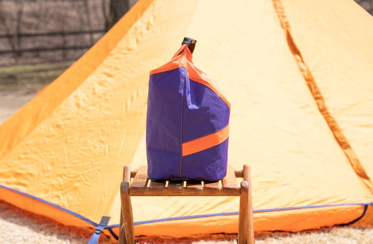 ビンテージテントやギアに絶妙にマッチするカラーリングで、特に、ビンテージテントとの相性を考えて選び抜いたパープルとオレンジカラーを採用しています。